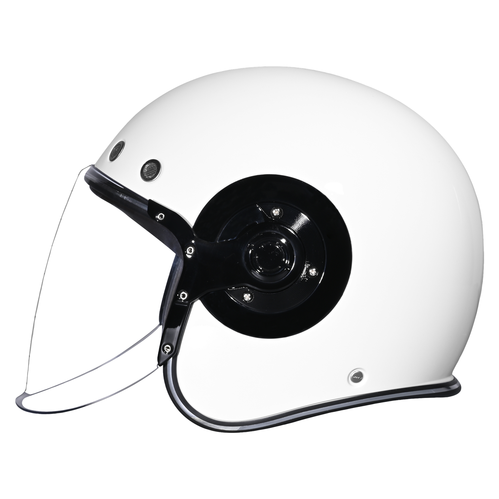 Our D.O.T. And ECE Daytona Retro Jet Helmet In The Hi-Gloss White Finish, Meets And Exceeds D.O.T. FMVSS 218 And ECE 22R06 Standards!! Features An Outer Anti-Scratch Clear Shield. Also Has A Quick Release Lock Retention System; One Finger Release Lever For Easy Detachment And A Removable, Hand Washable Interior (Moisture Wicking Fabric). Bluetooth Compatible. Cloth Draw String Bag Included. Sizes Range From XS-XL.