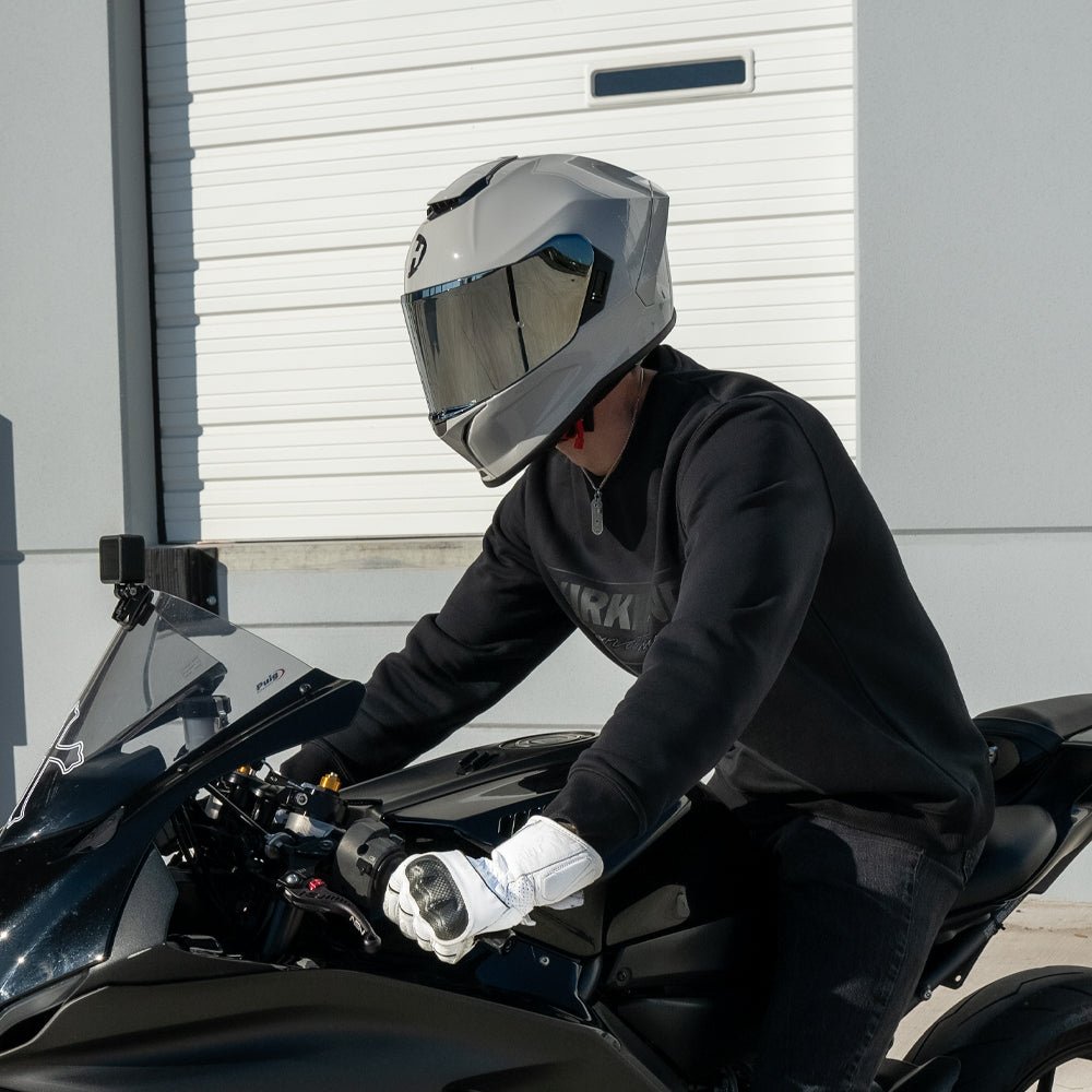 Our D.O.T. And ECE Daytona Viper Helmet, With Inner Anti-Scratch Retractable Smoke Shield, In Cool Grey, Meets And Exceeds D.O.T. FMVSS 218 And ECE 22R06 Standards. With 2 Different Shell Sizes, You’re Sure To Get That Proportionate Fit!! Features A Dual Shield System; Outer Anti-Scratch Clear Shield With Pinlock 120 Lens (Anti-Fog) And Inner Anti-Scratch Retractable Smoke Shield. Also Has A Quick Release Lock Retention System; One Finger Release Lever For Easy Detachment, Passive Chin And Forehead Ventilation, And A Removable, Hand Washable Interior (Moisture Wicking Fabric). Bluetooth Compatible. Cloth Draw String Bag Included. Sizes Range From XS-2XL.