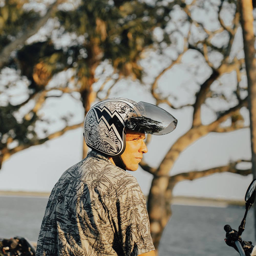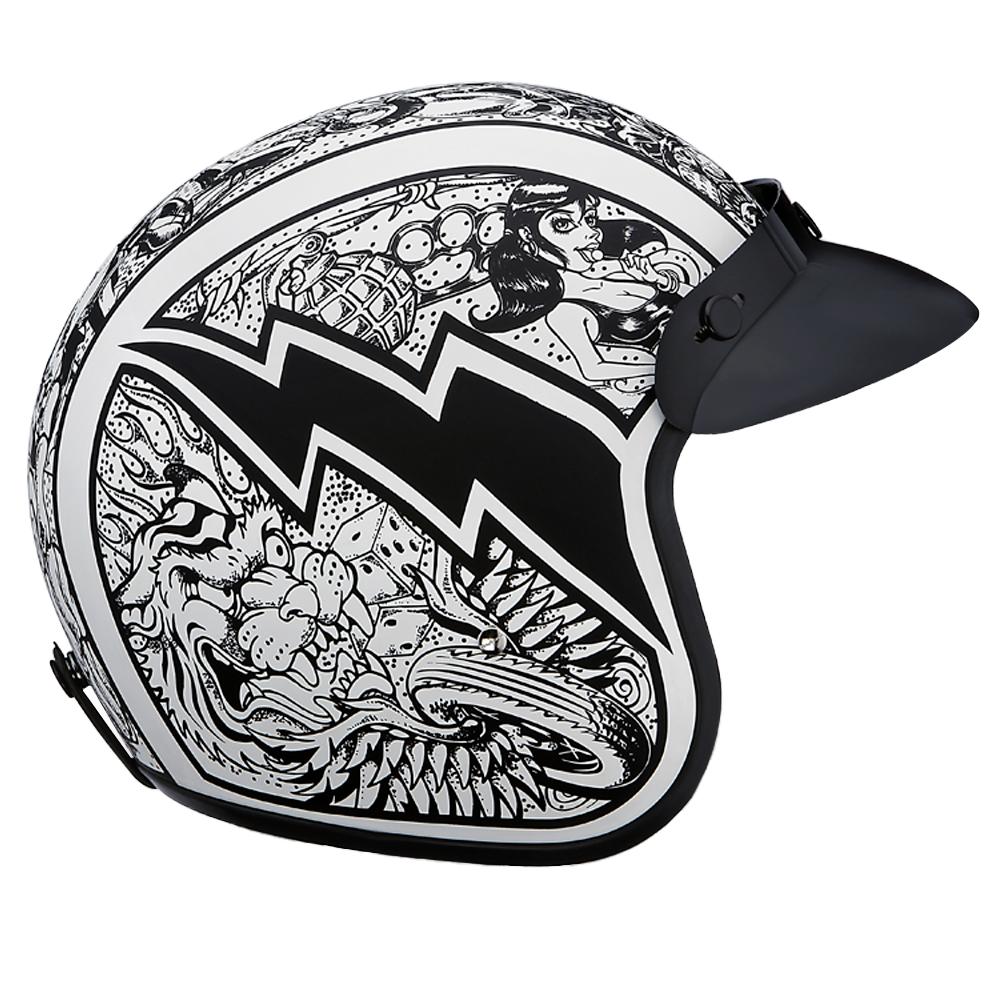 DOT Approved Daytona Cruiser Open Face Motorcycle Helmet – Men, Women & Youth – With Visor & Graphics – W/ Graffiti